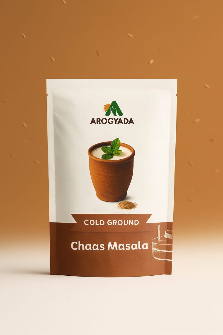 Each spoonful of Arogyada Tea Masala is carefully crafted using handpicked spices like cardamom, cinnamon, cloves, black pepper, dry ginger, nutmeg, and tulsi, all stone-ground slowly to preserve their natural oils and potency.